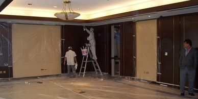 Over 250 Credenzas and Desk all specially designed and custom built for the executive offices of each division. This also included reception desks, over 250 custom conference tables (both large and small) and dining tables. Each item was made in Flat-Cut Mahogany Wood with Closed Pore Finish Tops and Open Pore Finishes on all Vertical Surfaces.